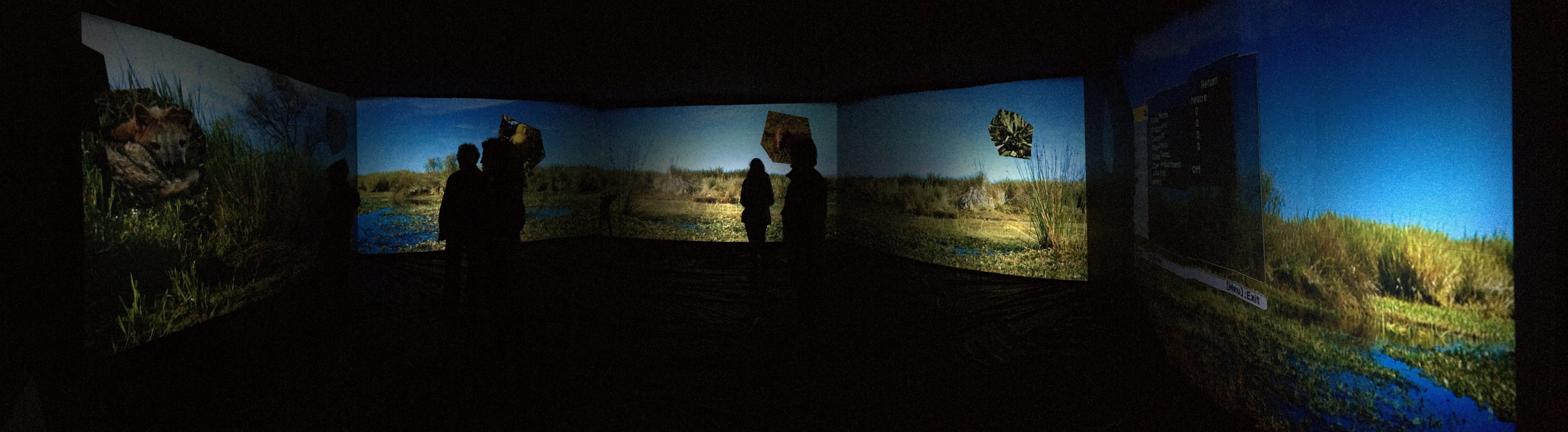 UCLA REMAP and Open Perception‘s OpenPTrack was used as the interface between the visitors’ movements and the piece’s media, enabling them to play through the point of view of individual animals. As individuals moved around the space, their perspectives followed as if moving through nature. When an entire group of visitors was standing still, a kaleidoscope of images presented every option of animal from which to choose. As soon as a person moved, the perspectives of the chosen animals resumed.