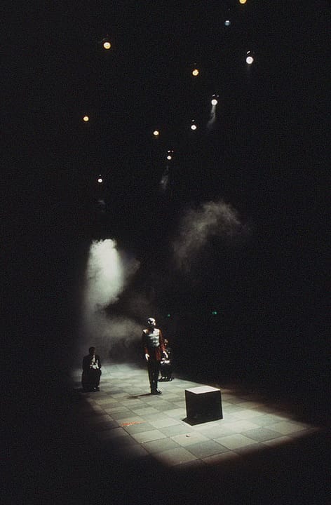 A mainstage production of Ionesco’s political and Shakespearian satire, Macbett was directed by graduate student Adam Shive for this MFA thesis, while collaborating with the HyperMedia Studio‘s Jeff Burke. Burke conceived and developed interactive systems for the show: The lighting and sound were manipulated by the motion and positions of performers, enabling the supernatural characters to control how they and others within the play’s world were presented.